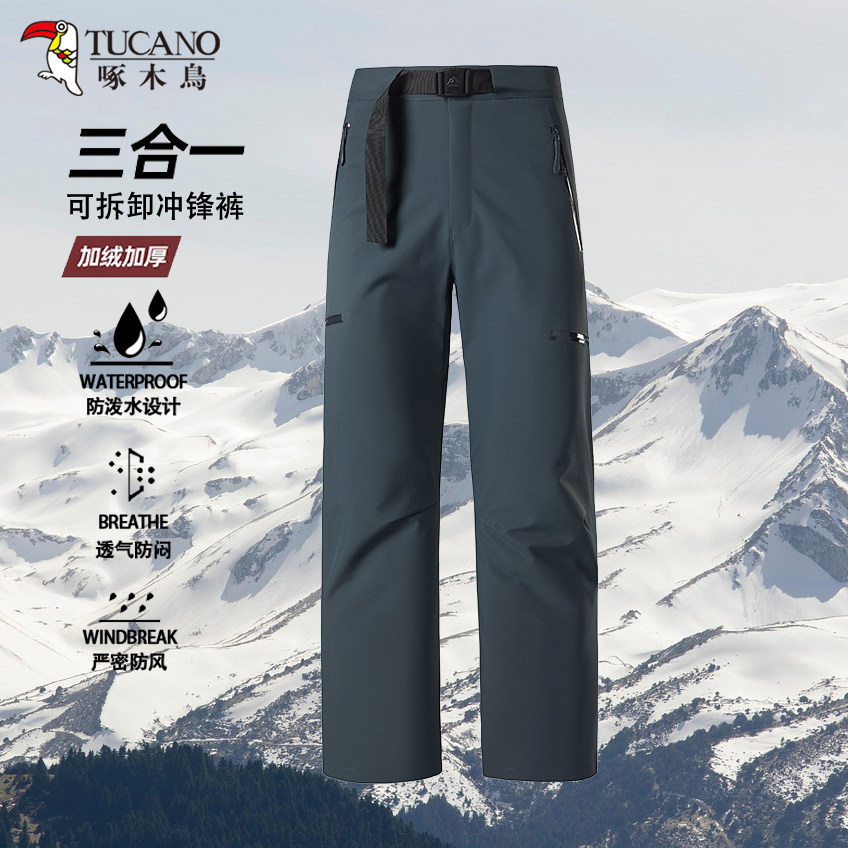 Woodpecker 3-in-1 Assault Pants for Men and Women 2025 New Detachable Liner Windproof and Waterproof Sports Hiking Pants