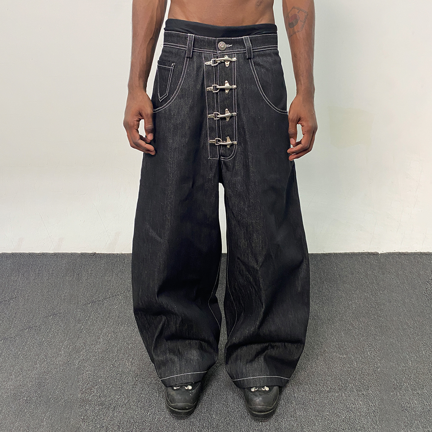 Wang Yiheng's DND4DES American street design denim original cow airplane buckle baggy scimitar jeans