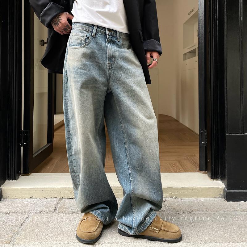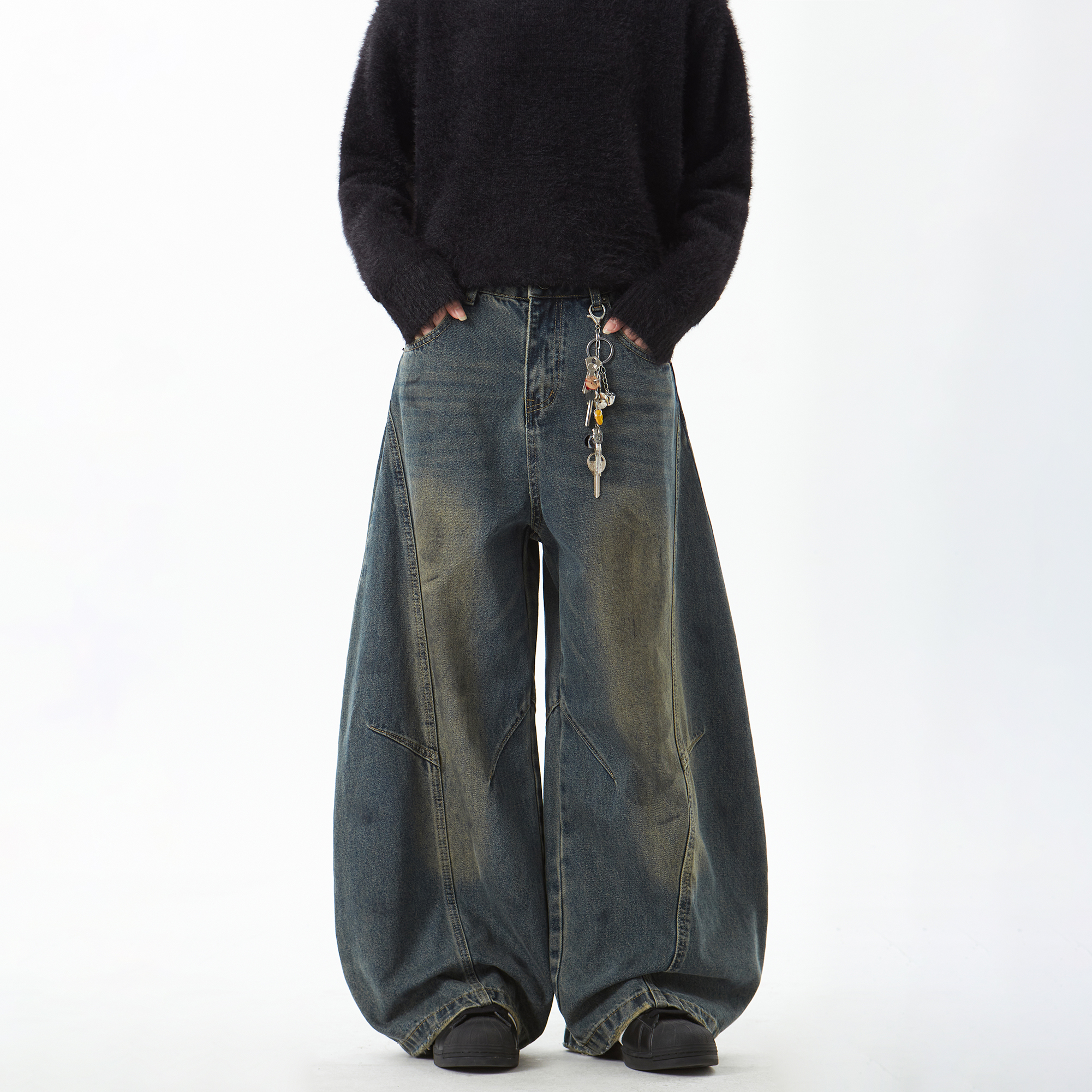 OXFREAK "Heavy Wash 13OZ" American Vintage Jeans Men's Straight Loose Baggy Scimitar Pants