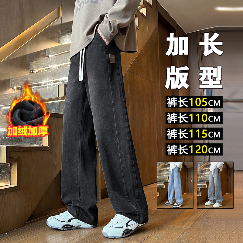 Extended version of pants: men's tall plush jeans, boys' autumn and winter thin and tall teenagers, casual straight-leg pants