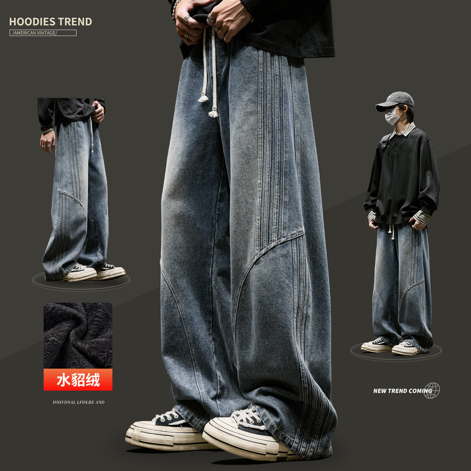 Pull-back jeans men's fall and winter 2025 new American retro straight loose men's casual fleece trousers