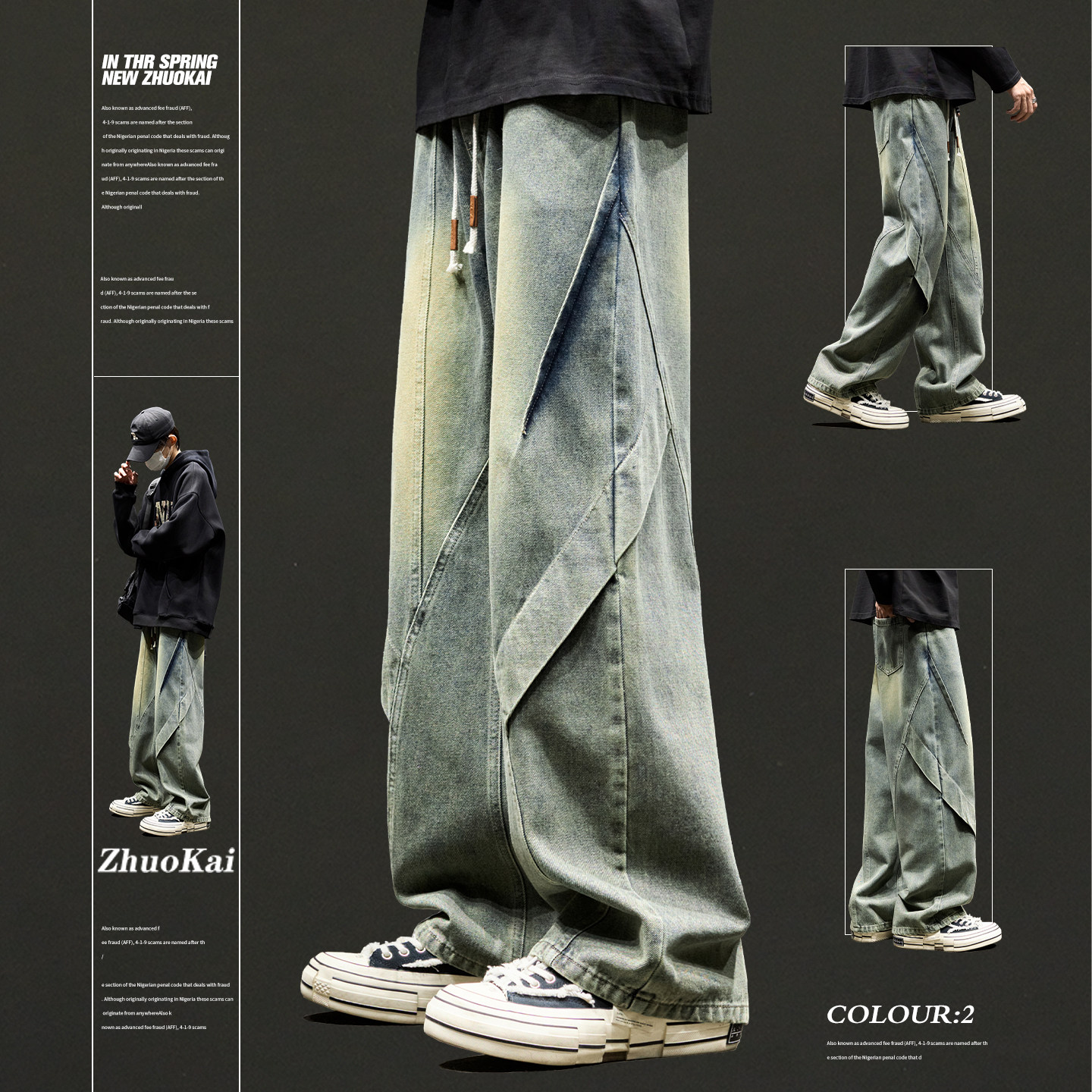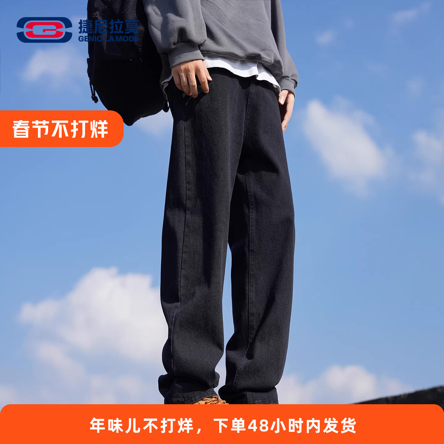 GENIOLAMODE men's spring new loose jeans American straight-leg pants