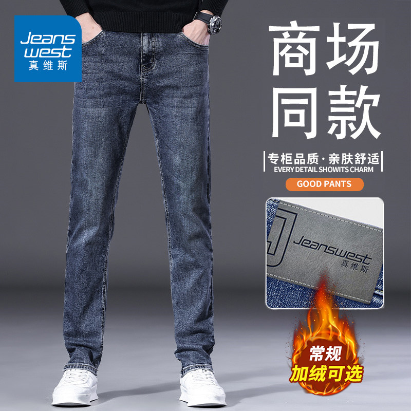 Zhenweiss jeans men's autumn/winter new 2025 men's slim straight trousers stretch trendy brand versatile fleece pants