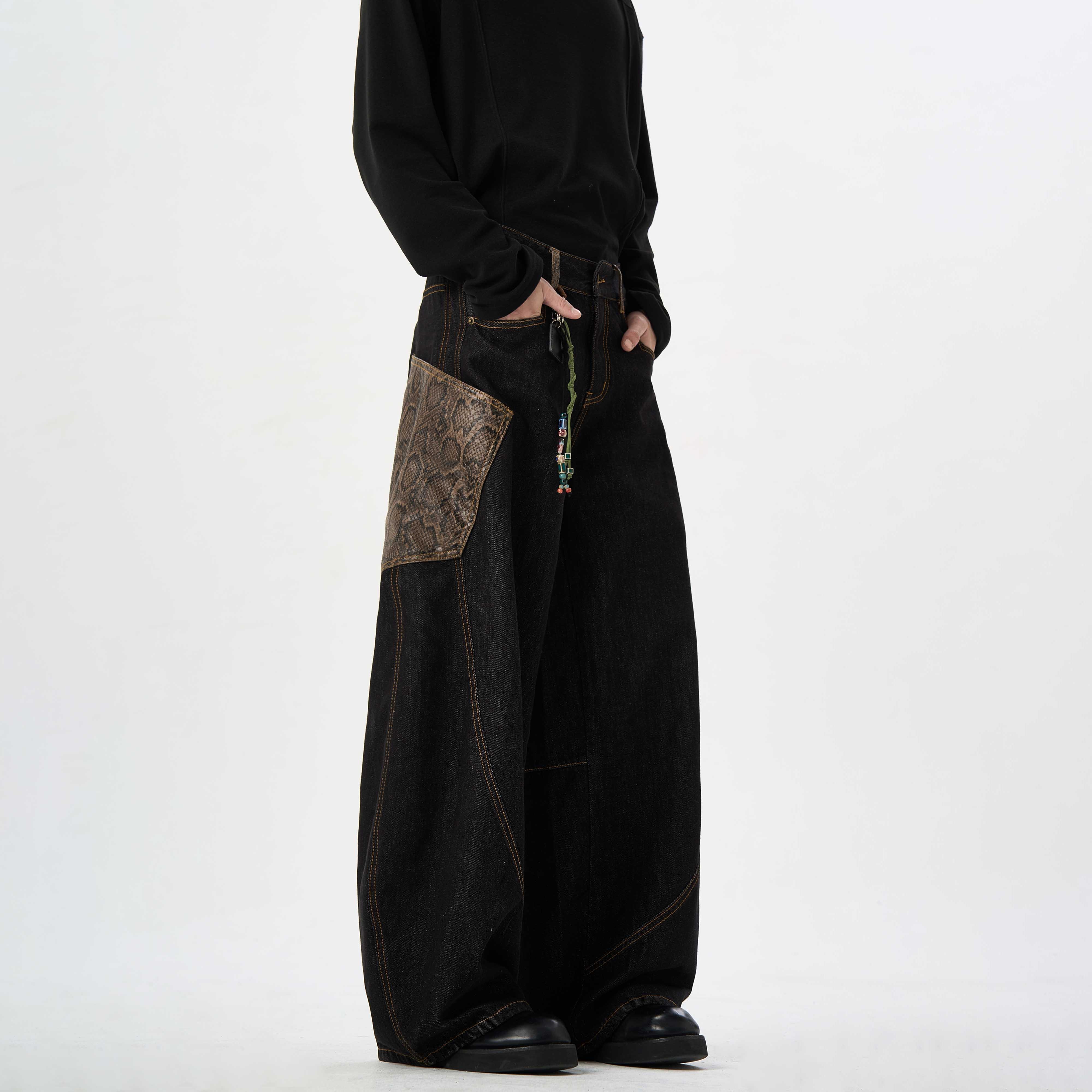 MAX ME Year of the Snake Limited [Original Cow Snakeskin Pants] Scimitar python black jeans wide-leg men's and women's pants