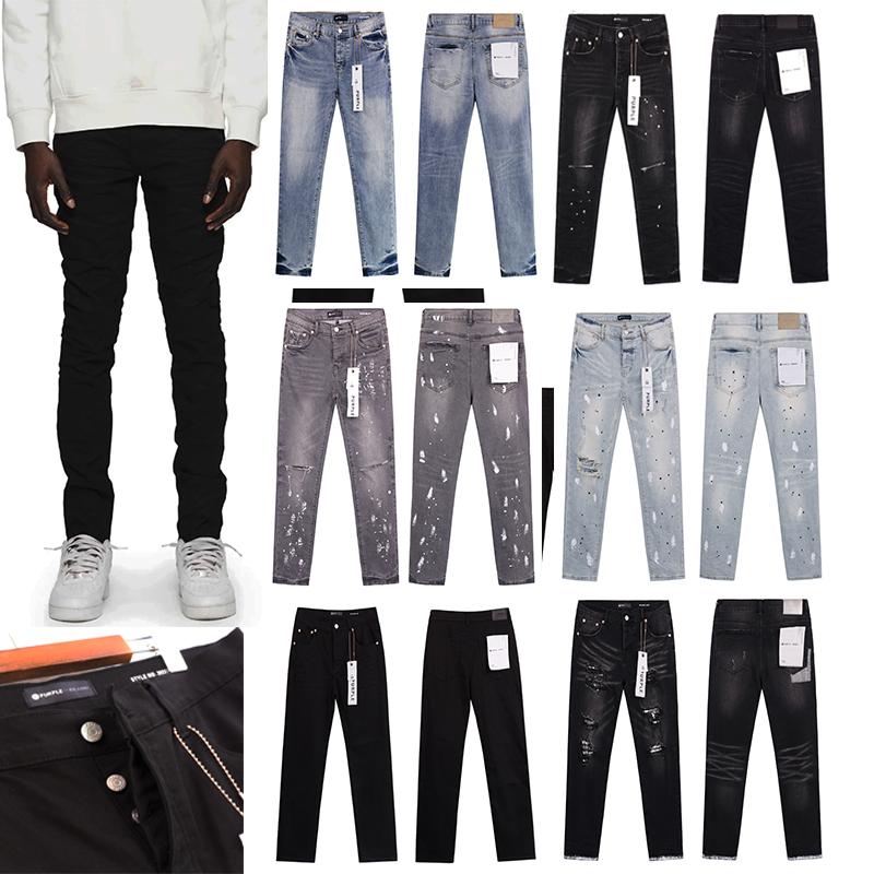 Purple Brand jeans, ink-splashed patchwork washed trousers, ripped pants, casual American high street trousers