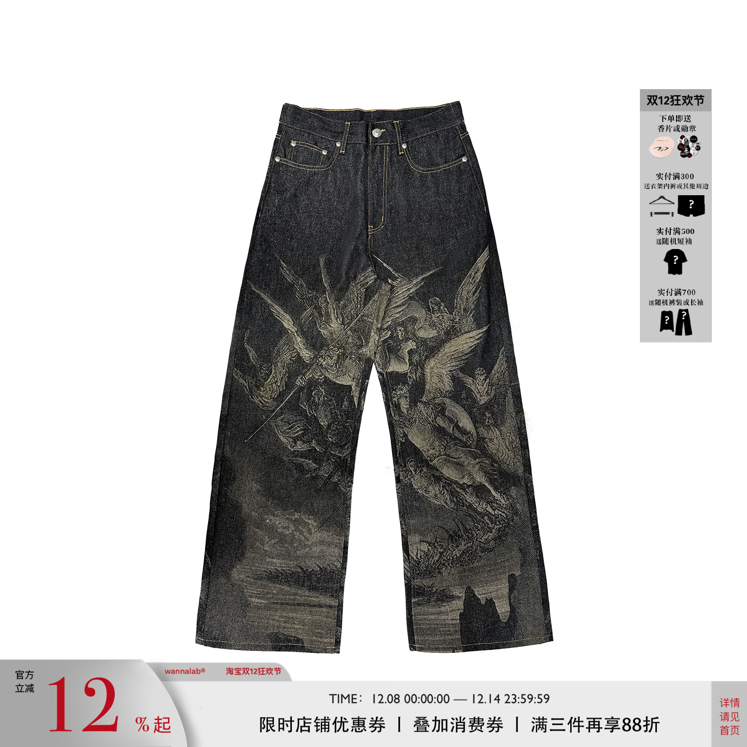WANNA LAB 25SS "Paradise Lost" laser burnt flower baggy original denim trousers with horn nail python leather brand
