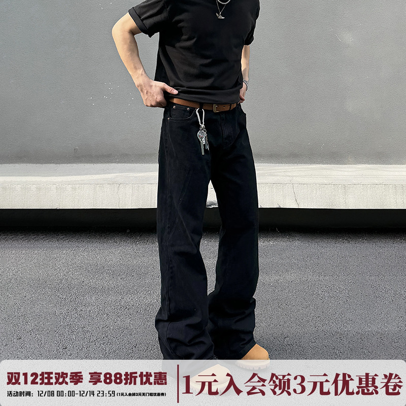 MADWITCH vintage wash bootcut jeans men and women loose casual wide-leg straight black pants ins