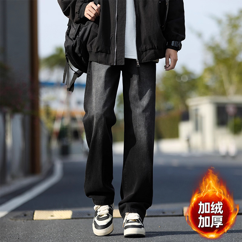 Retro American jeans men's spring, autumn and winter fleece thickened 2025 new loose straight length pants trendy brand