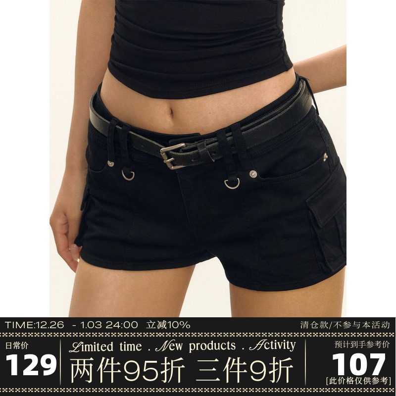 Ariseism American Vintage Black Denim Shorts Women's 2025 Summer New Versatile Skinny Spice Pants