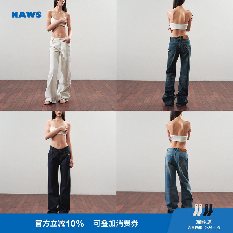 NAWS [+5CM N2] smile pants color fading denim slightly loose V-waist raw cow slim straight jeans