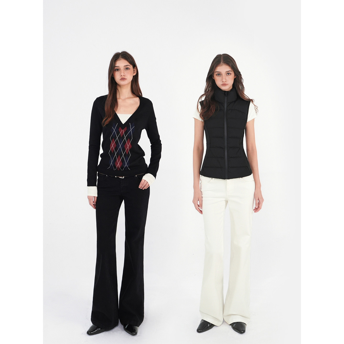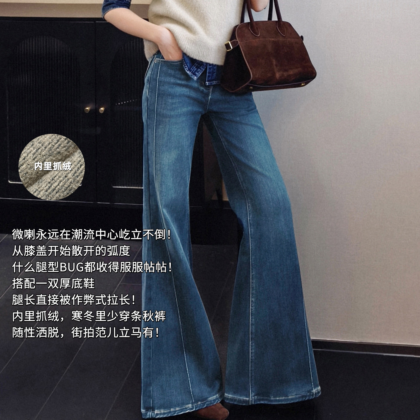 yangzifan town store series evil trim pants narrow fit fleece mid-low rise micro flared pants jeans