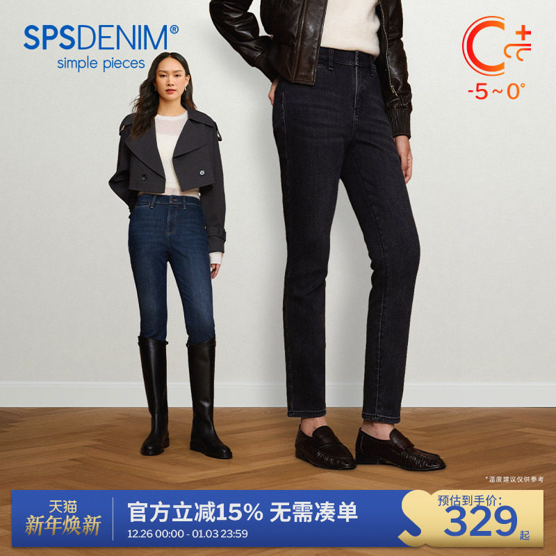 【Warm Super Leggings】simplepieces autumn and winter new SPS denim women's four-sided cropped pants