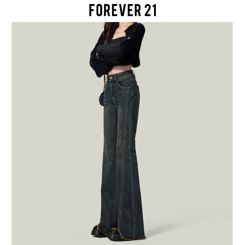 Forever 21 Vintage American High Waist Nano Gray Micro Flared Jeans Women's Slim Horseshoe Floor-length Pants