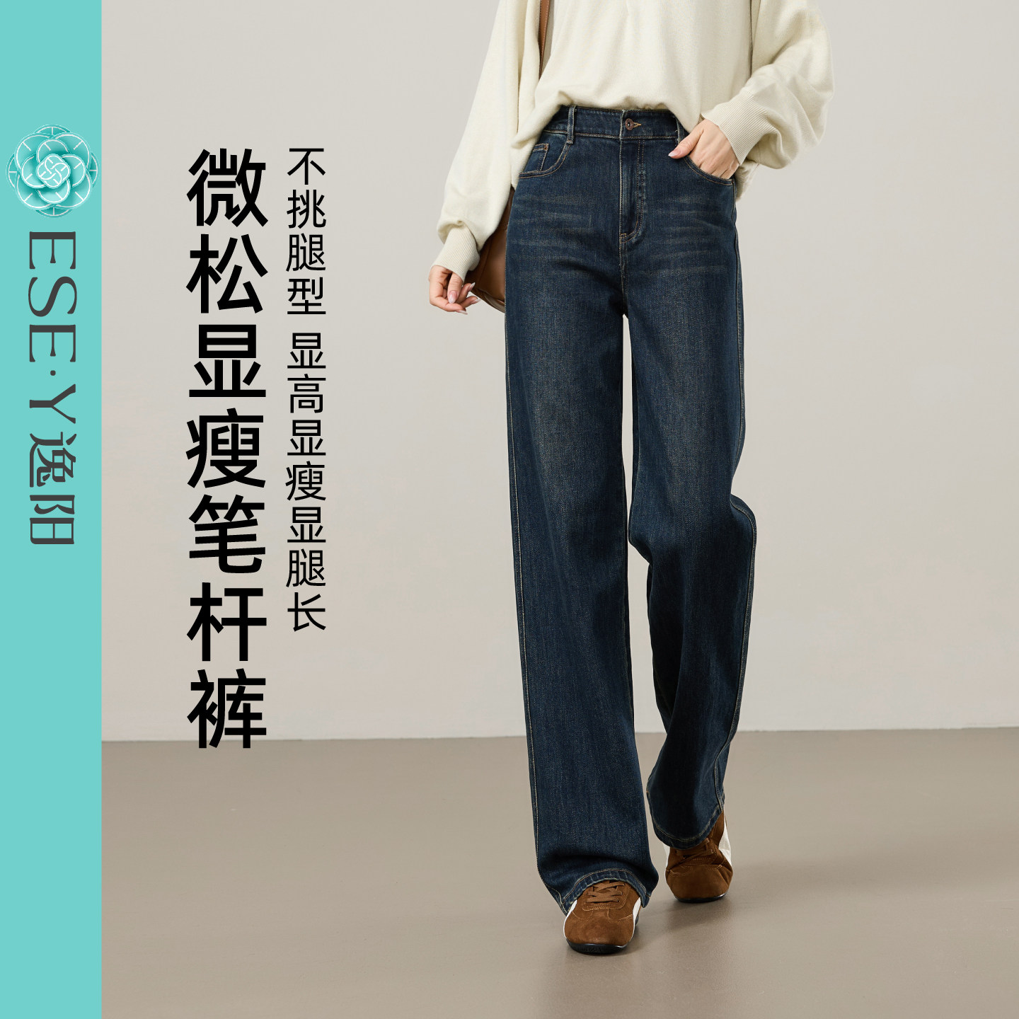 Yiyang narrow straight jeans women's dark blue spring 2026 new slimming loose wide-leg long pants white