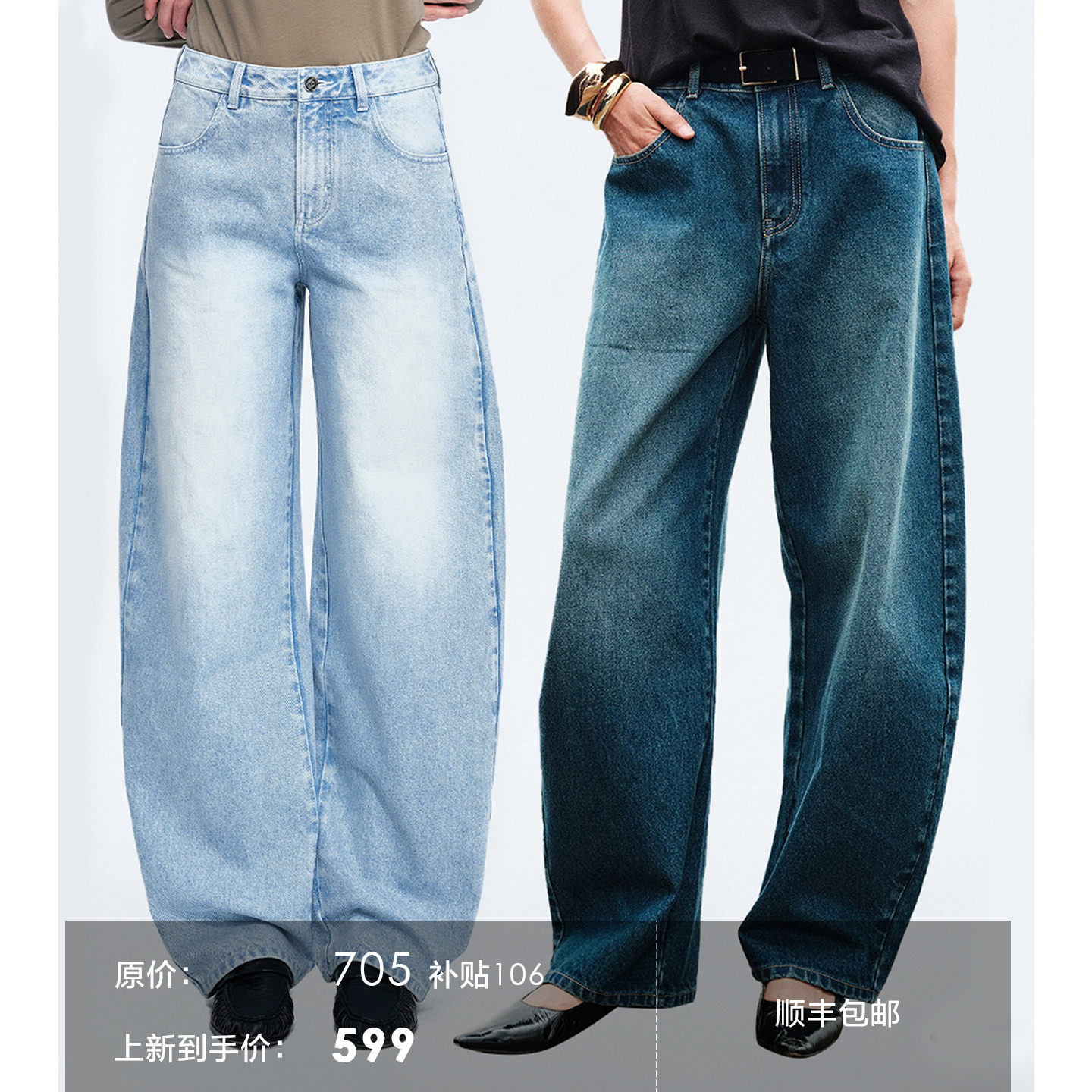 SUNONEONE Embroidery Label Series H2 American Low-rise Fleece Straight-leg Jeans Women's Autumn and Winter Wide-leg Casual Pants