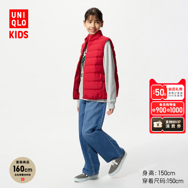 Uniqlo children's clothing men's and women's loose straight denim trousers washed products wide leg pants autumn and winter new 478128