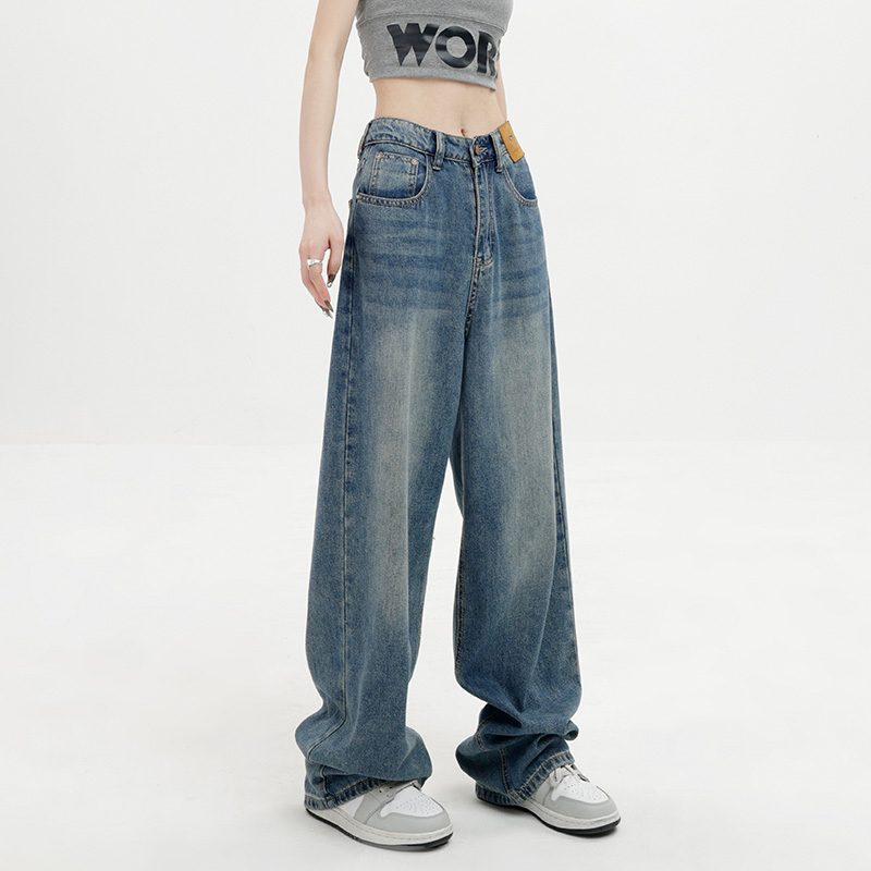 KENH American Vintage Blue Straight Loose Wide-Leg Jeans Women's Casual Versatile Light Color Drape Floor-length Pants