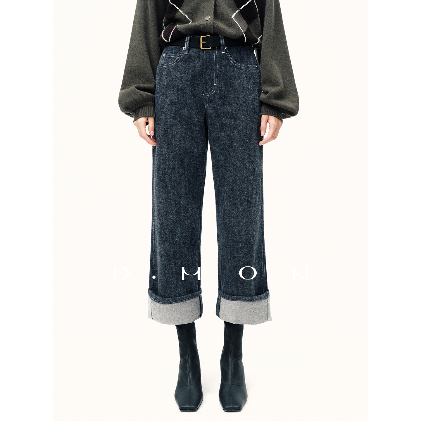 DMON autumn and winter god pants_European imported milled cotton feel fashionable yuppie loose straight cropped jeans