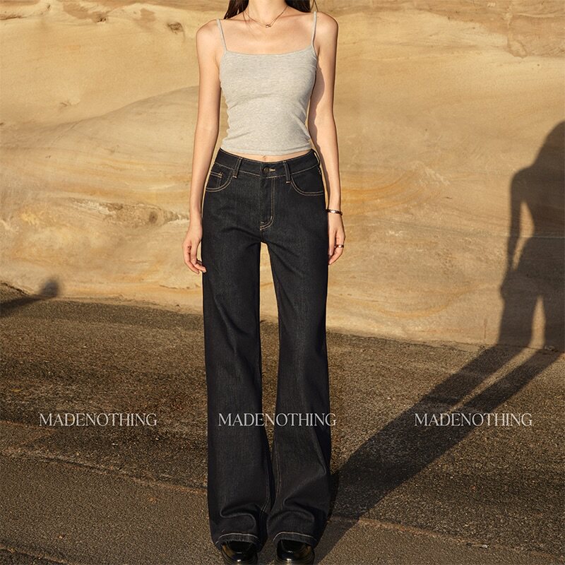MADE NOTHING Lyocell MR050 Denim Primary Color Classic Mid-Low Waist Stretch Straight Jeans Women's