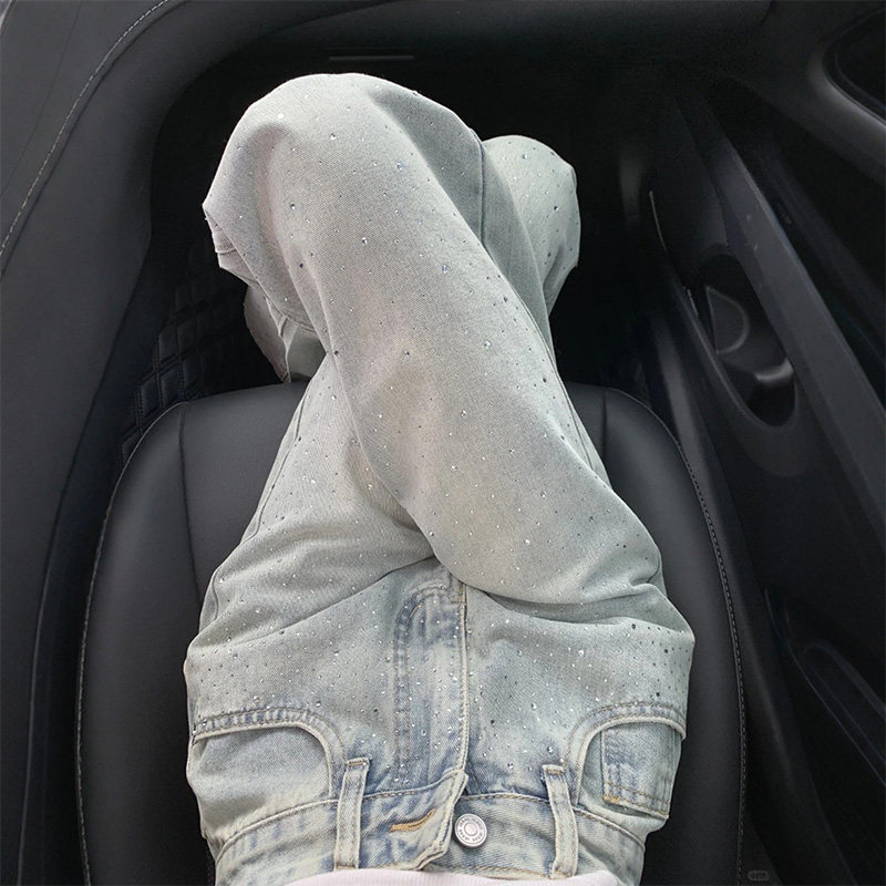 Light blue wide-leg jeans women's 2025 winter new small slimming hot diamond design loose straight pants