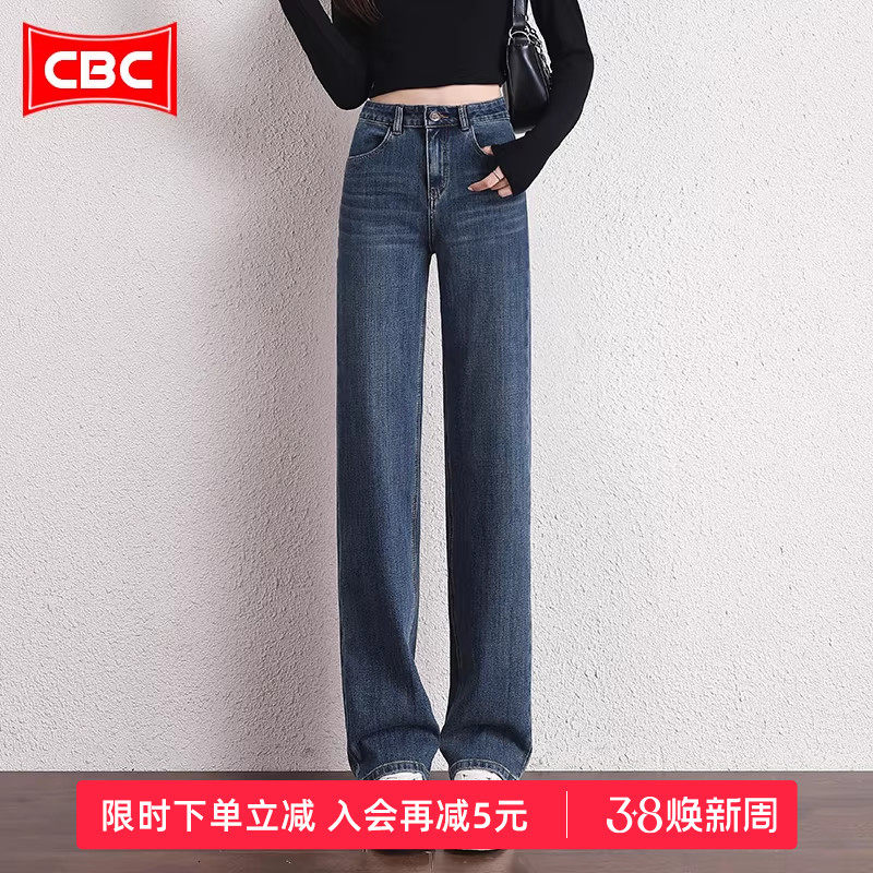 CBC Retro Blue Narrow Wide-Leg Jeans Women's 2026 New Spring High-end Pants Small Straight Pants