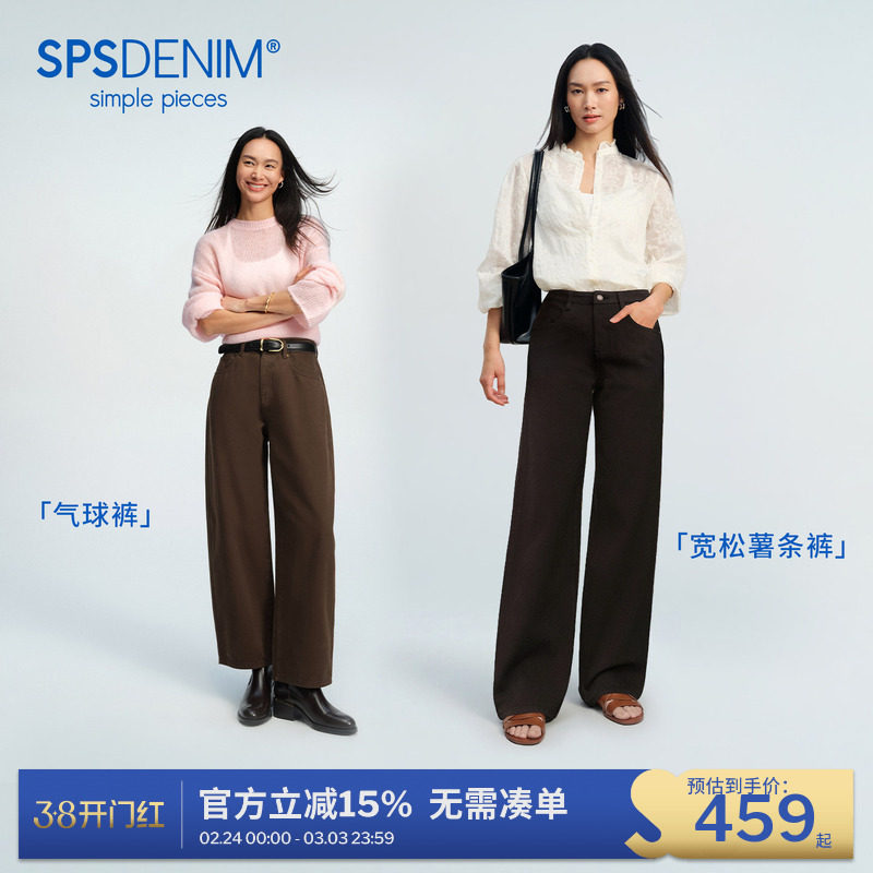 [Maillard French Pants] simplepieces autumn new SPS denim four-sided stretch wide-leg floor-length pants for women