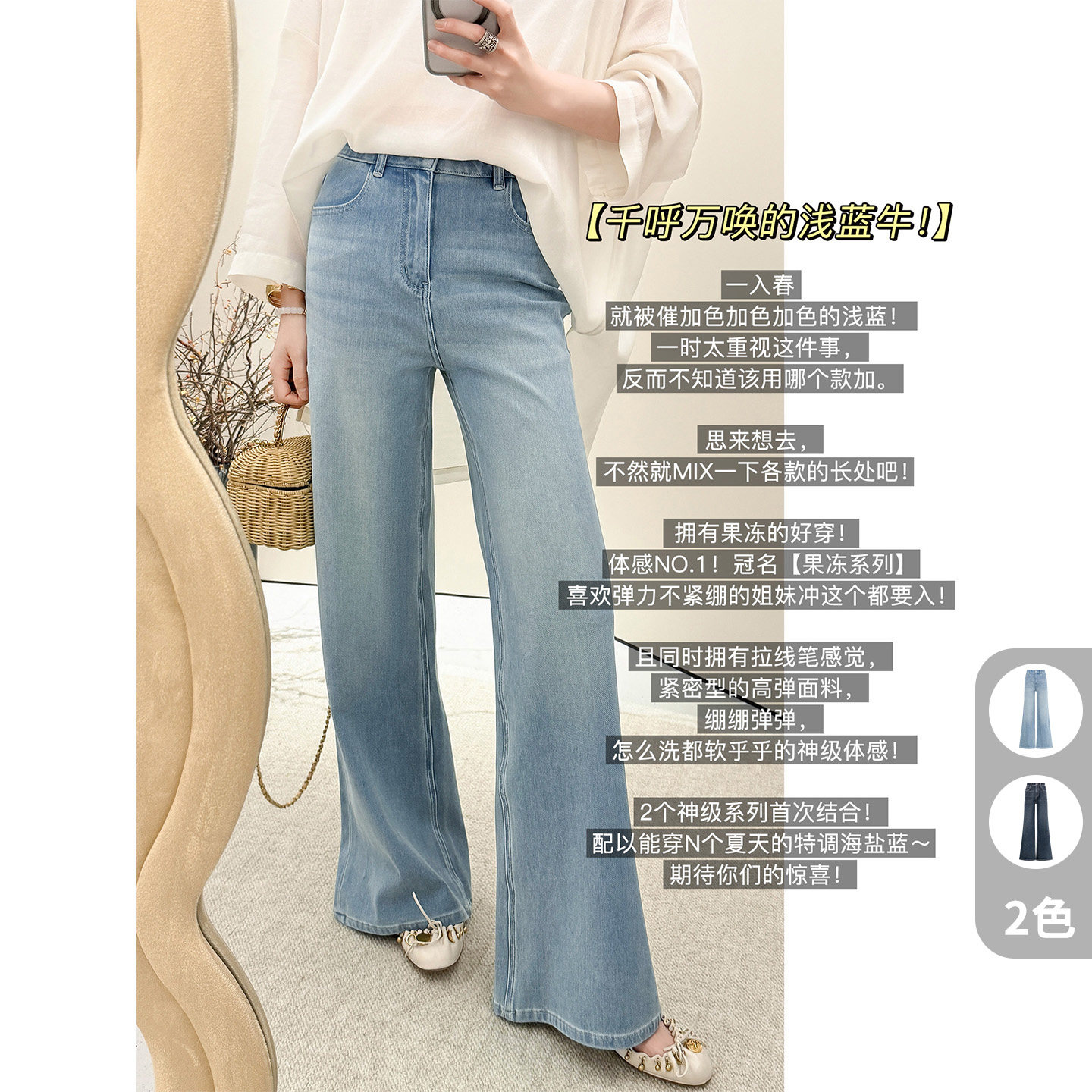【Yi Mengling Same Style】Deleteex "Dream in the Mirror" low-waisted washed blue high-elastic bootcut jeans