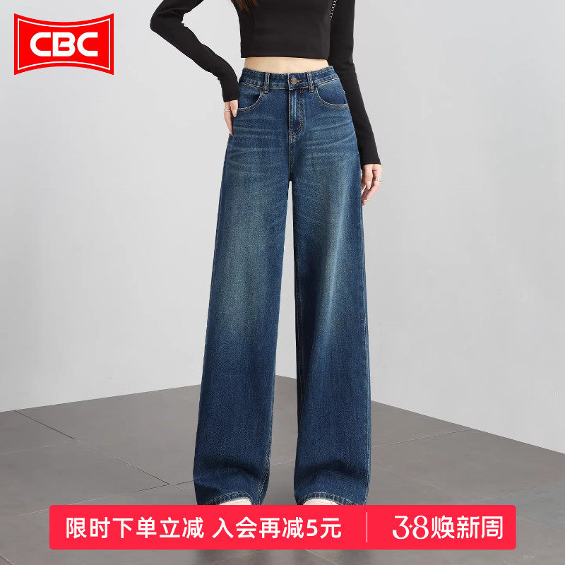 CBC Retro Blue Wide-Leg Jeans Women's 2026 New Spring Pear Shape Slim Loose High-end Brand Straight Pants