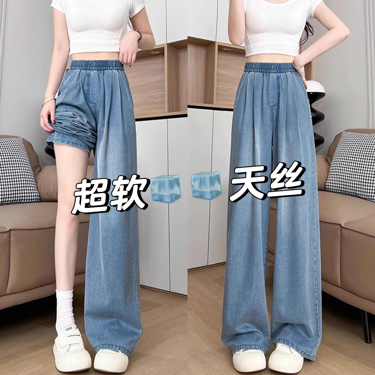 Lyocell Tencel Jeans Women's Summer Thin 2026 New Plus Size Fat MM High Waist Slim Ice Silk Wide-leg Pants