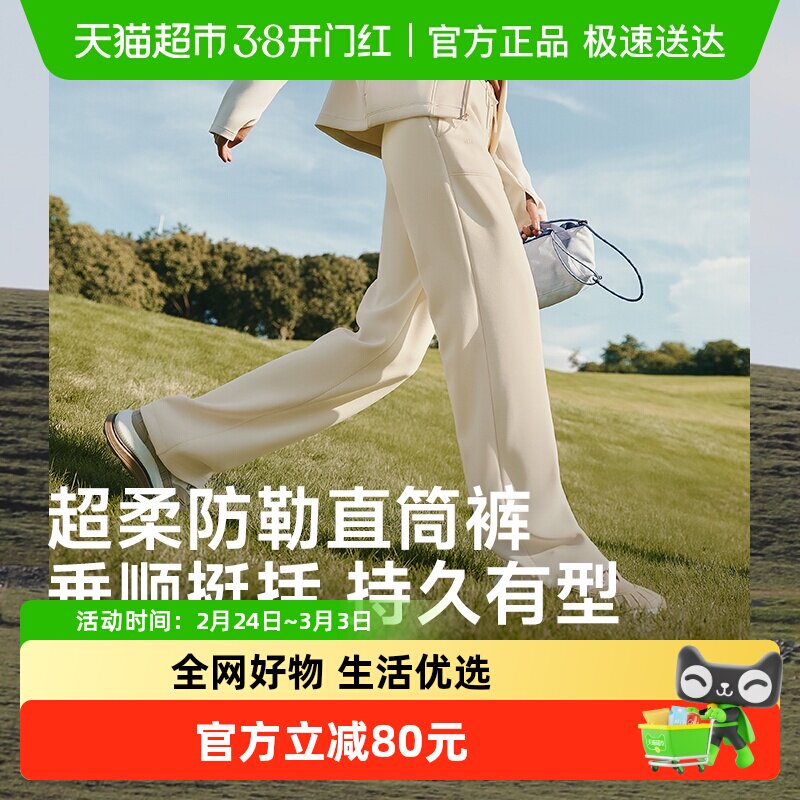 【Pull down to enjoy discounts】Jiaoxia women's high-elastic straight-leg pants hiking mountaineering modal pants plush to keep warm