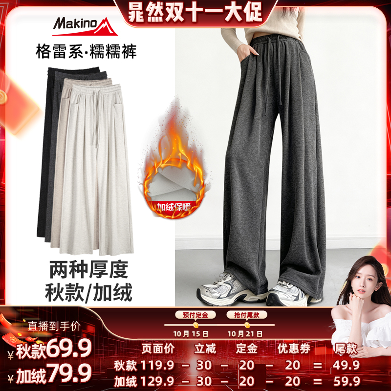 【Chao Ran Double 11】Yankainu women's slacks, glutinous rice pants, plush autumn and winter versatile wide-leg pants