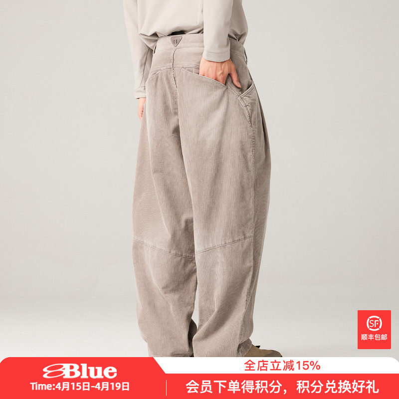 Lanqi retro trend washed old corduroy trousers autumn and winter new irregular bag opening loose tapered pants for men