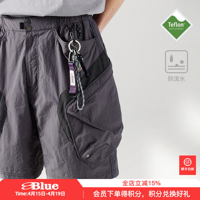 Lanqi water-repellent splicing workwear three-dimensional pocket cropped pants summer new loose straight sports shorts for men