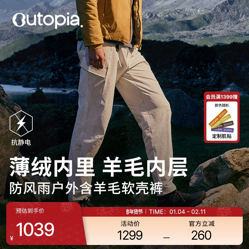 Storm Softshell Pants with Merino Wool Warm Men's and Women's Outdoor Hiking Fleece Hiking Pants | Outopia