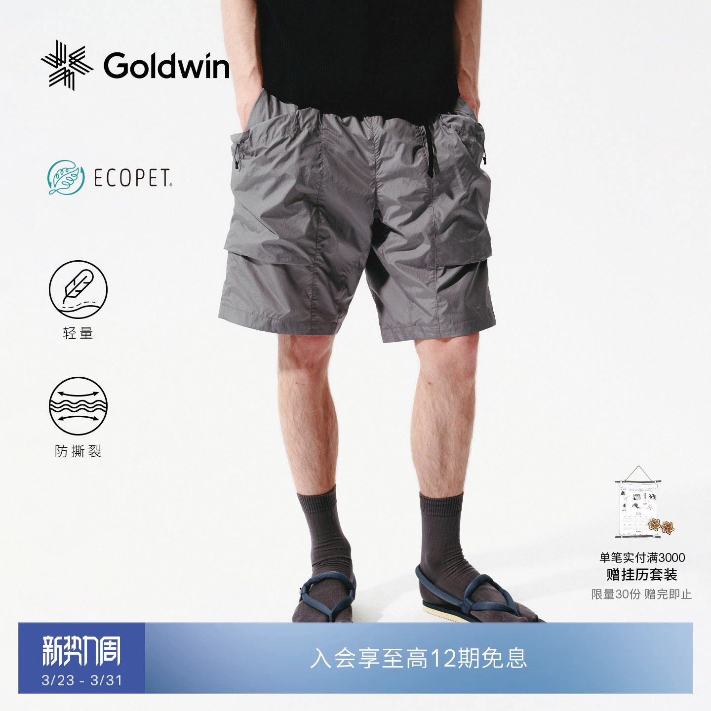 【Early Spring New Color】Goldwin Water-Repellent Shorts RIP-STOP Rip-STOP Anti-Tear Lightweight Large Pocket Functional Pants
