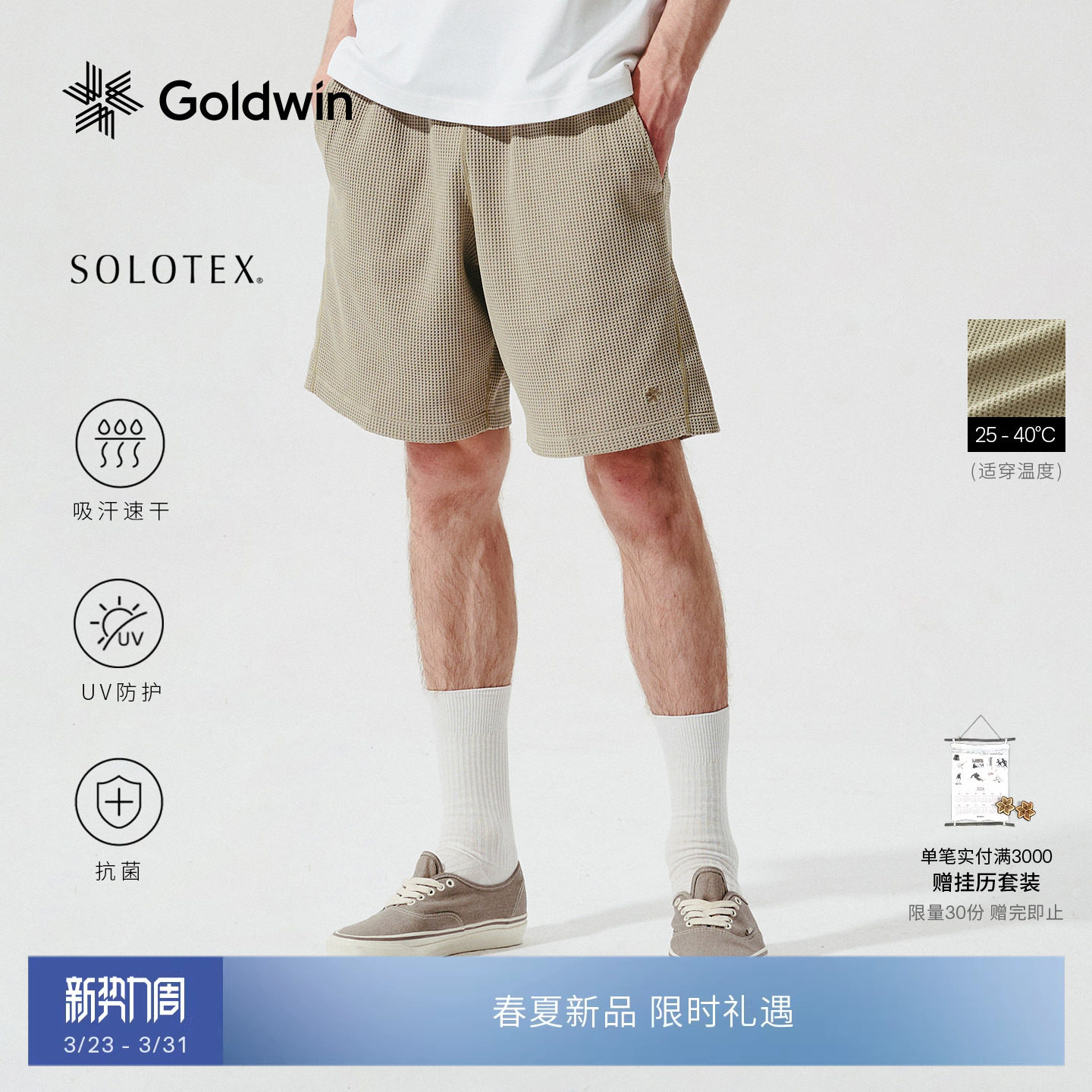【New Color in Early Spring】Goldwin Lightweight Waffle Shorts SOLOTEX Antibacterial and Quick-Drying Sunscreen for men and women