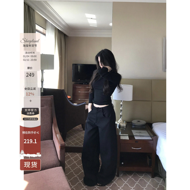 Sheepland old money style black high-drape suit pants for women in autumn and winter loose and slim wide-leg casual pants