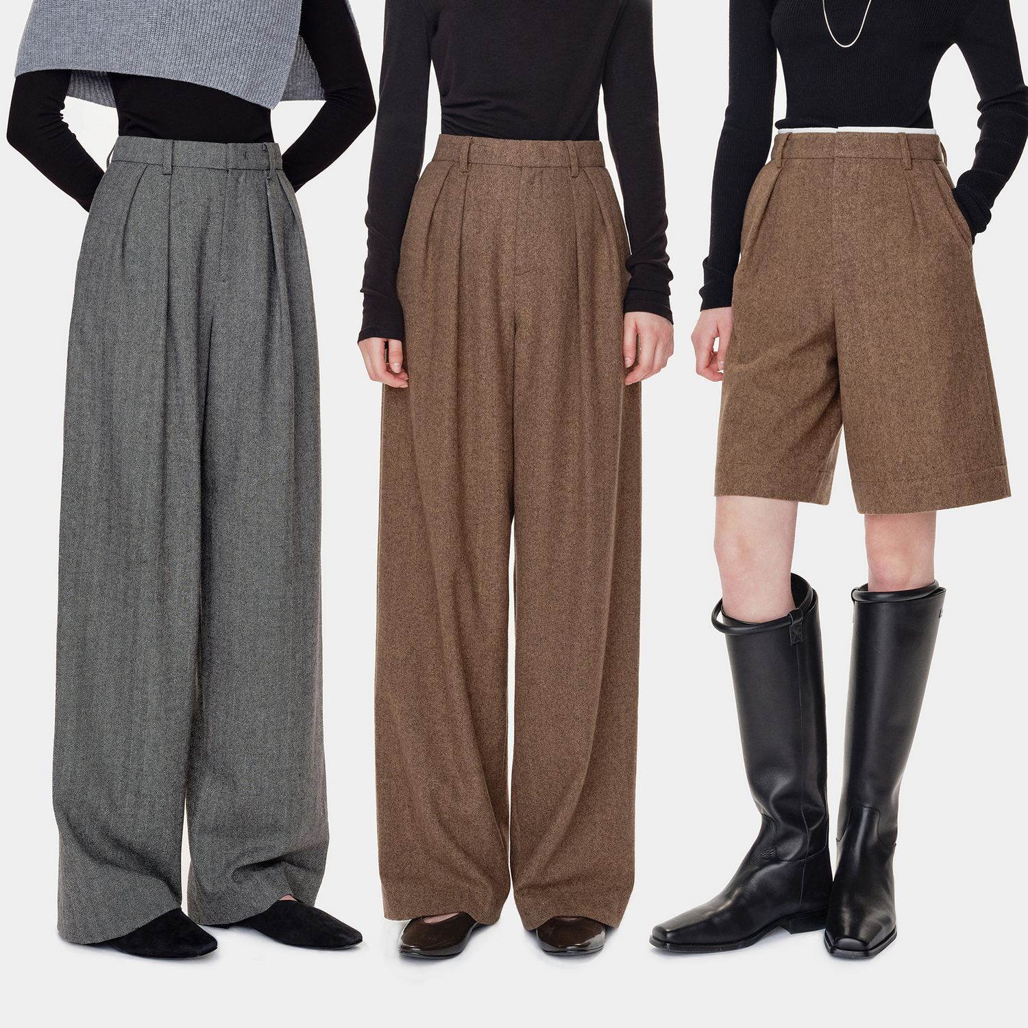 Marllen vintage hundred with old money style herringbone wool wide-leg trousers/shorts/contrasting shorts autumn and winter women