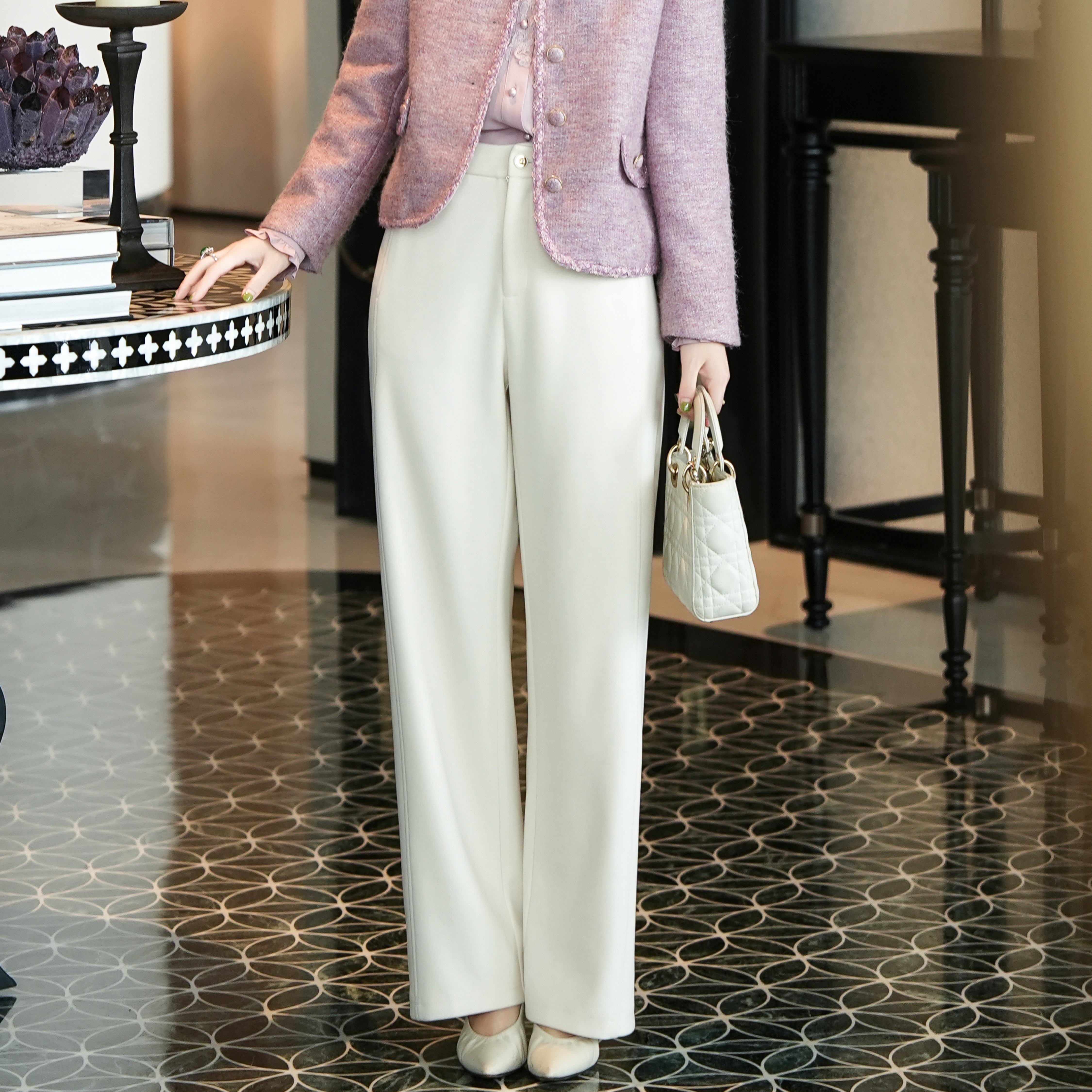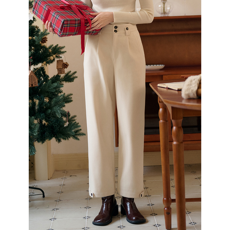 Xizi/[Winter Warm Sun] Acetate wool commuting simple straight white trousers/KZTJ454