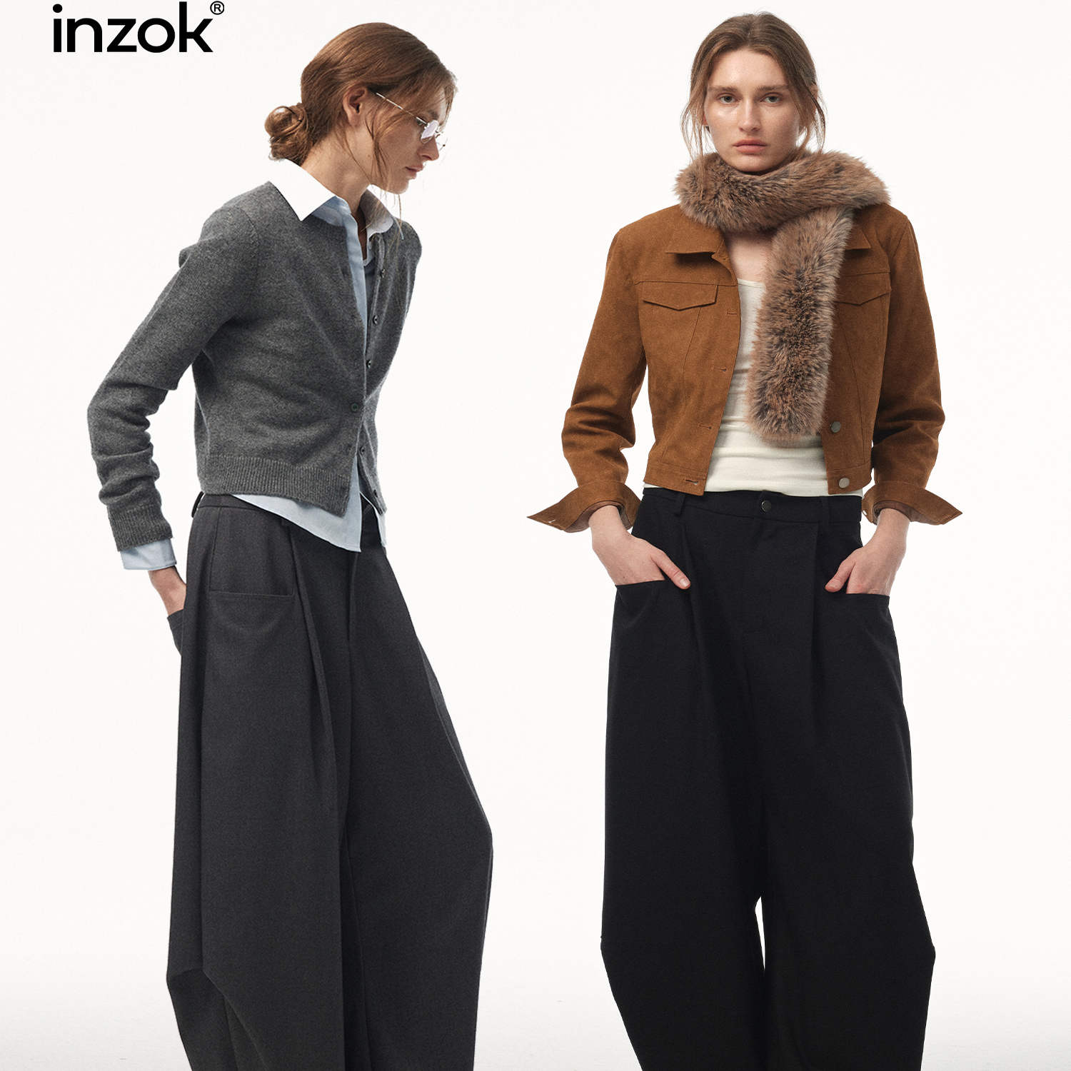 iNZOK "Reserved Romanticism" Fall/Winter Yuppie Drape Versatile Loose Wide-Leg Trousers 25AW
