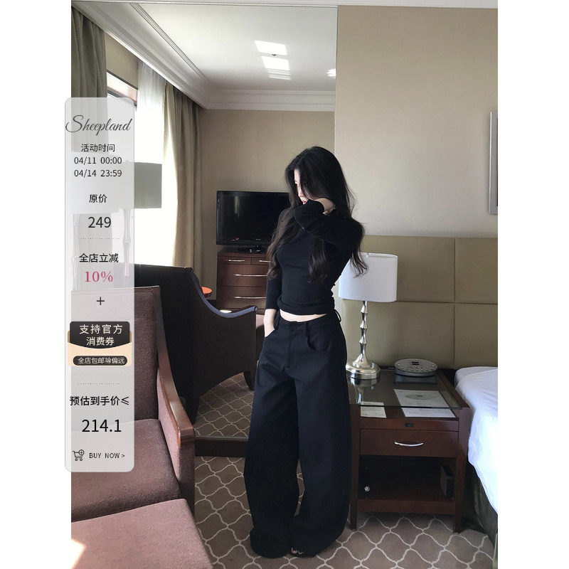 Sheepland old money style black high-drape suit pants women's spring loose slim wide-leg casual pants