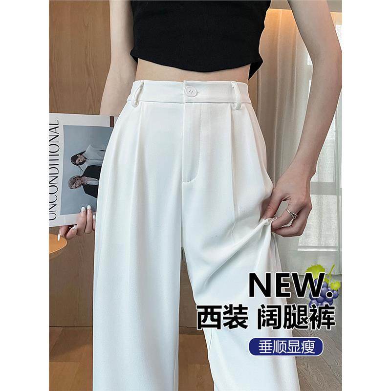 High-end suit pants, women's summer thin pear-shaped figure, high-waisted slimming, loose straight drape, floor-length wide-leg pants