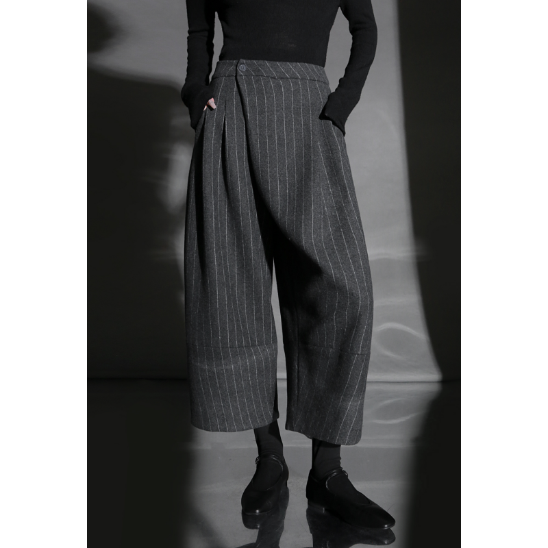 PIAOIN silhouette layered cropped design scimitar wool pants women's loose wide-leg trousers versatile casual pants winter