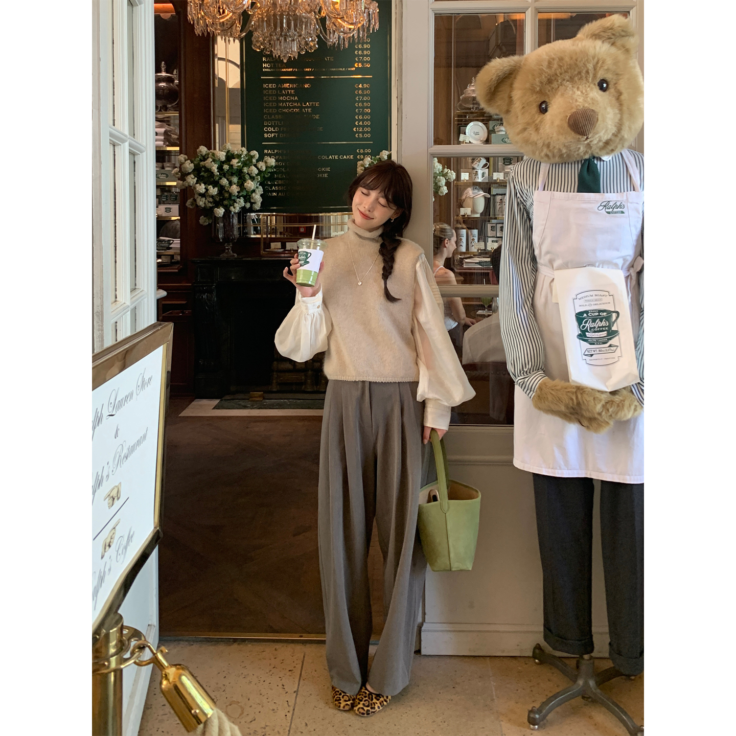 LE LALIN cup latte high-waisted slimming drape, coffee color loose commuter trousers, women's casual wide-leg pants autumn