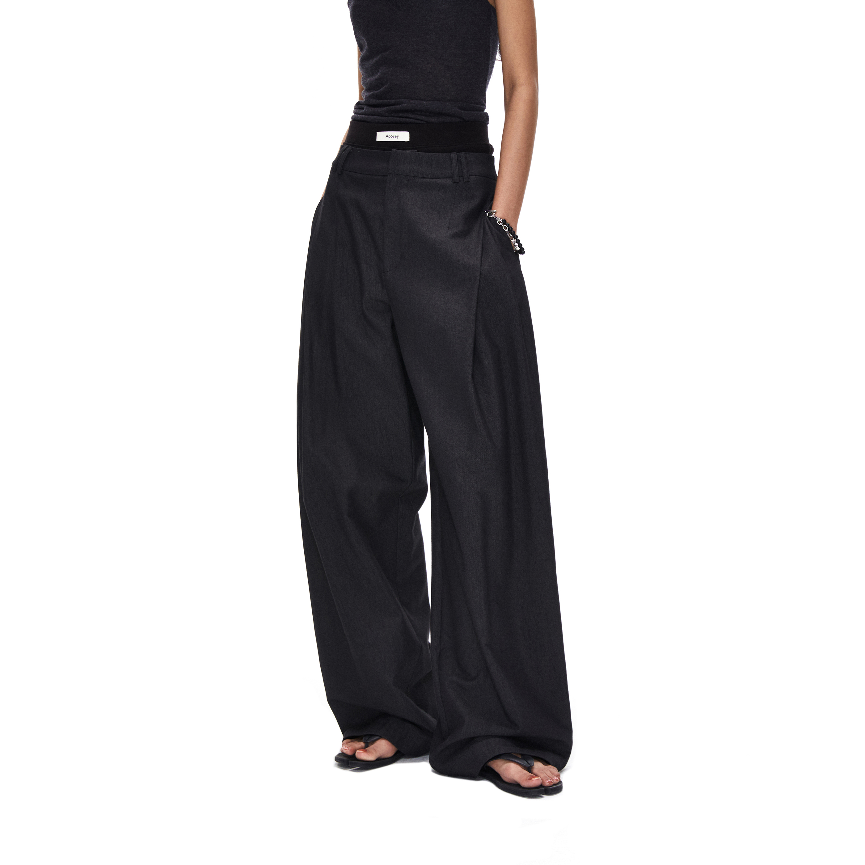 ACOSEY 25SS Drape Scimitar Side Pleated Wide-Leg Lazy Floor-Length Suit Pants