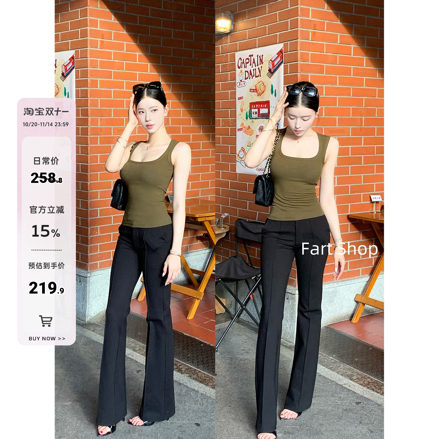 【Fart Shop】"Leg Essence" bootcut pants mid-rise three-dimensional cut stretch slim black trousers for women