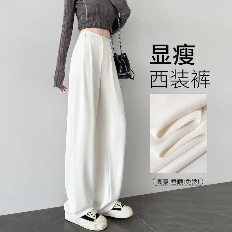 Global Flower [Berlin Black Qiao] plus size black high-end drape suit pants versatile high-waisted loose straight trousers
