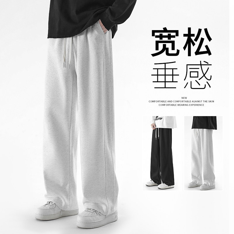 Pants: Men's spring trousers, gray wide-leg straight-leg pants, men's new casual sweatpants, boys' loose sweatpants