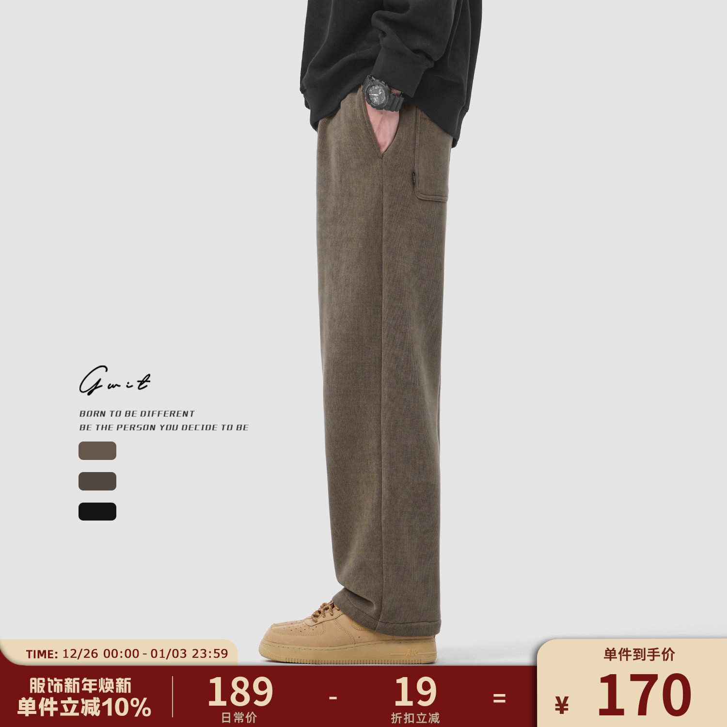 GWIT Winter Heavy Olympic Fleece American Trendy Brand Straight Warm Wide-leg Drape Fleece Thickened Slacks for Men