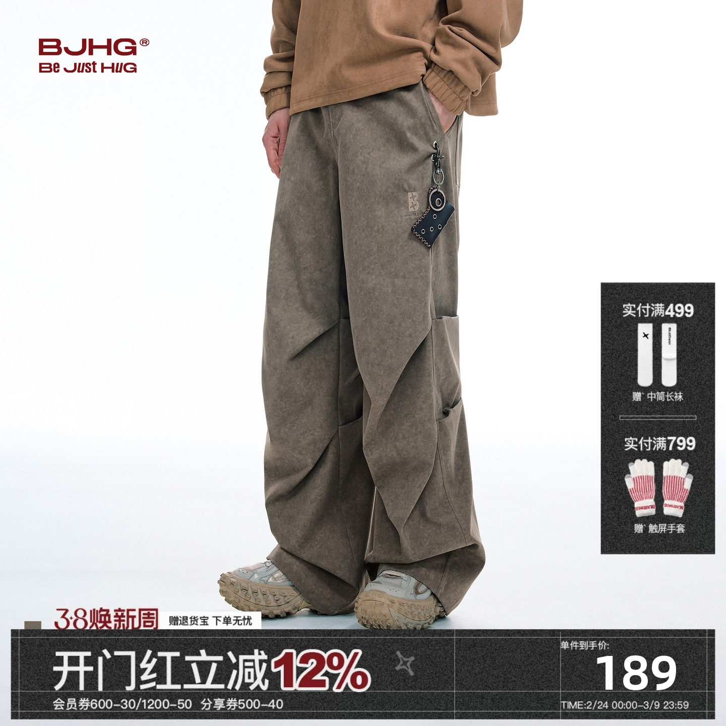 BJHG reckless vintage paratrooper cargo pants men's pants spring loose casual American high street pants wide-leg pants